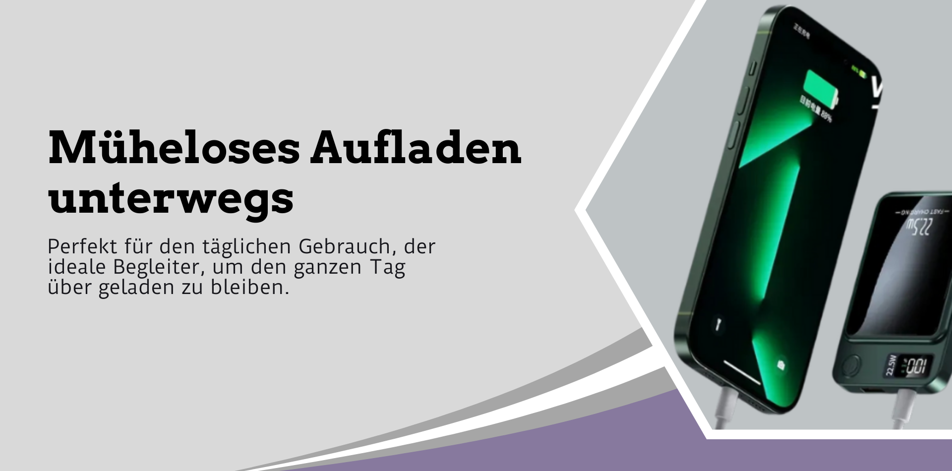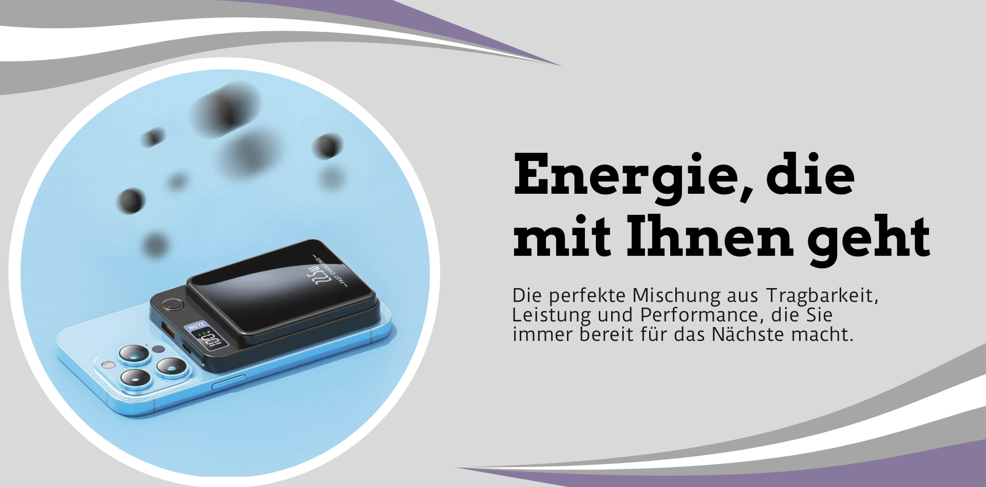 Erleben Sie hochmoderne Ladetechnologie in einem schlanken, ultra-dünnen Design. Perfekt für diejenigen, die Leistung ohne das Gewicht benötigen, bietet diese tragbare Lösung schnelles und effizientes Laden, wo immer Sie sind. Mit magnetischer Ausrichtung und kabelloser Funktionalität können Sie Ihre Geräte schnell und einfach aufladen – ganz ohne das lästige Kabelgewirr.