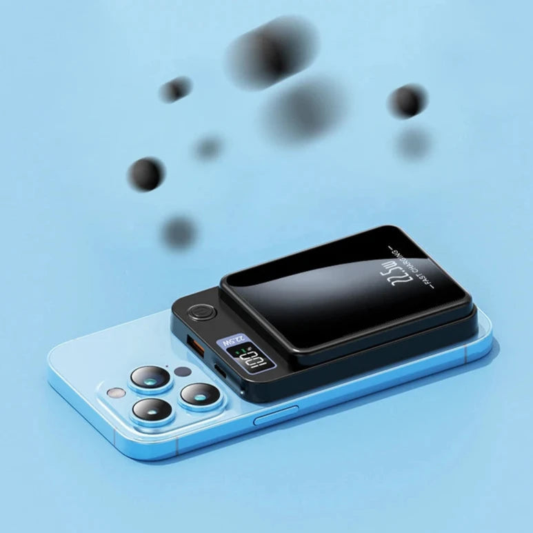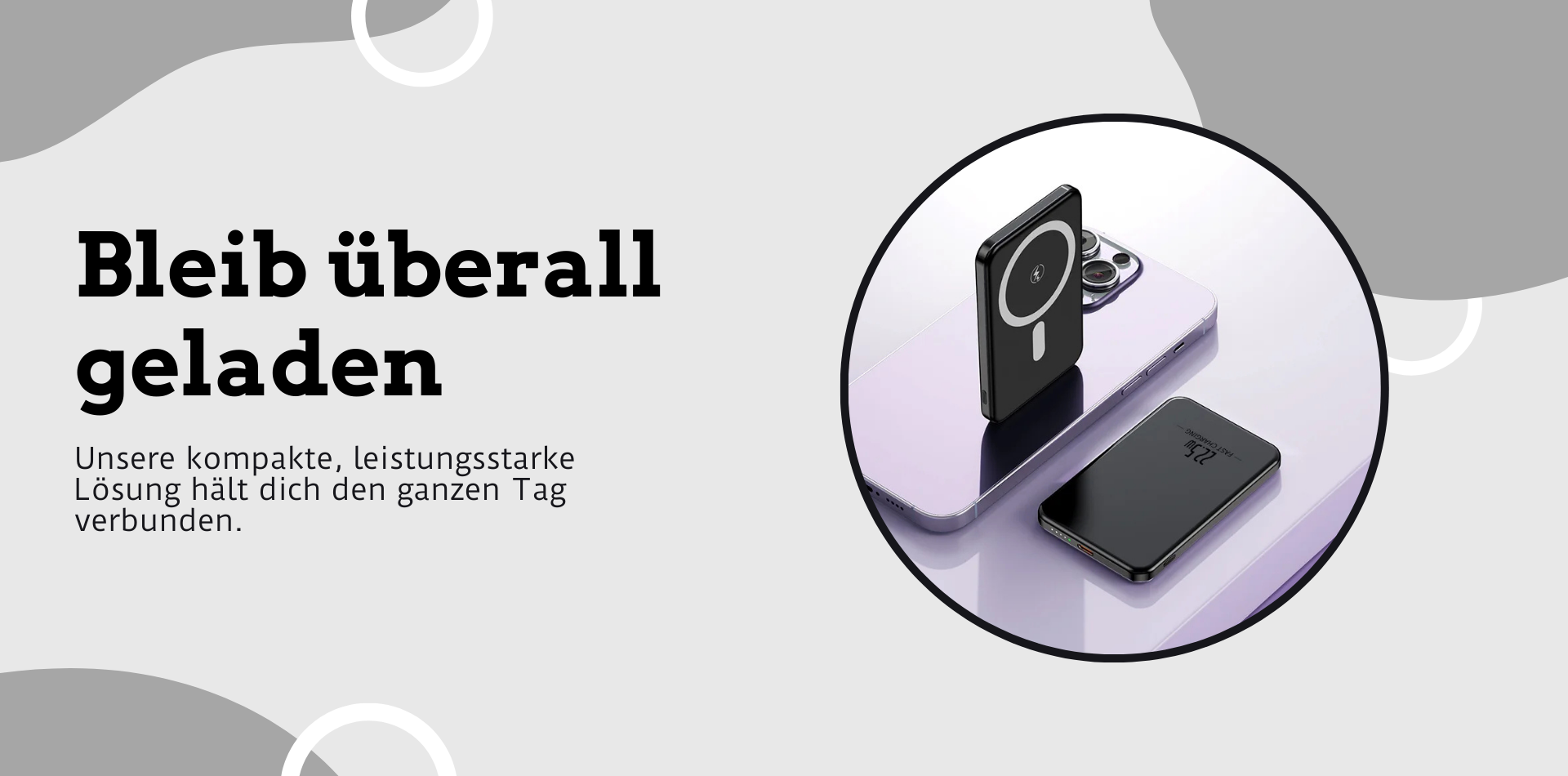 Machen Sie sich nie wieder Sorgen, dass Ihnen der Strom ausgeht. Unsere kompakte, leistungsstarke Lösung hält Sie den ganzen Tag über verbunden – egal, ob Sie reisen, arbeiten oder unterwegs sind. Mit seinem schlanken, magnetischen Design und der kabellosen Bequemlichkeit können Sie mehrere Geräte ganz einfach aufladen, ohne sich mit verhedderten Kabeln herumschlagen zu müssen.